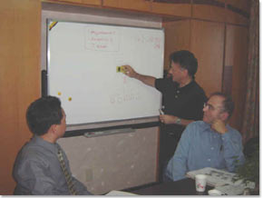 2002年聯(lián)合國(guó)國(guó)際開(kāi)發(fā)署醫(yī)療咨詢專家Cliff Letton總裁在求是總部交流中國(guó)疾病預(yù)防控制中心(CDC)項(xiàng)目。