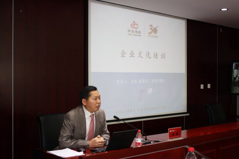中華保險(xiǎn)控股公司董事長陳景耀、總經(jīng)理李迎春等公司領(lǐng)導(dǎo)、處級(jí)(含)以上人員及子公司科級(jí)(含)以上人員參加了本次的視頻宣導(dǎo)培訓(xùn)。我司董事長安林博士受邀為中華保險(xiǎn)控股公司全系統(tǒng)人員作《中華保險(xiǎn)新企業(yè)文化核心理念體系》宣導(dǎo)培訓(xùn)。