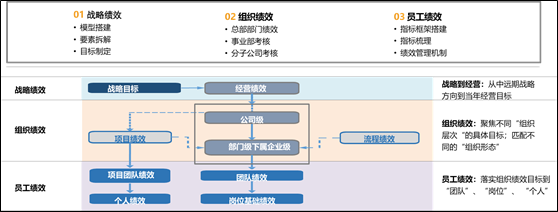 同時,企業(yè)績效體系同樣也要與薪酬改革要求相互匹配。企業(yè)效益目標(biāo)的達(dá)成直接決定工資總額增長幅度,需要從戰(zhàn)略績效、組織績效到員工績效對效益增長目標(biāo)進(jìn)行逐級分解,傳導(dǎo)效益增長壓力,支撐企業(yè)整體效益目標(biāo)的達(dá)成。同時,還需要將工資總額分配、激勵獎金發(fā)放與目標(biāo)關(guān)聯(lián),強(qiáng)調(diào)持續(xù)的戰(zhàn)略落地與目標(biāo)匹配。