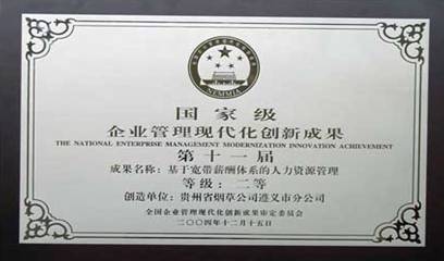 2004年11月,求是咨詢及求是聯(lián)合企業(yè)發(fā)展研究院接受遵煙委托,對其人力資源改革與創(chuàng)新實踐予以完善、并進行理論上提煉。其成果《基于寬帶薪酬體系的人力資源管理》榮獲第十一屆國家級企業(yè)管理現(xiàn)代化創(chuàng)新成果二等獎。