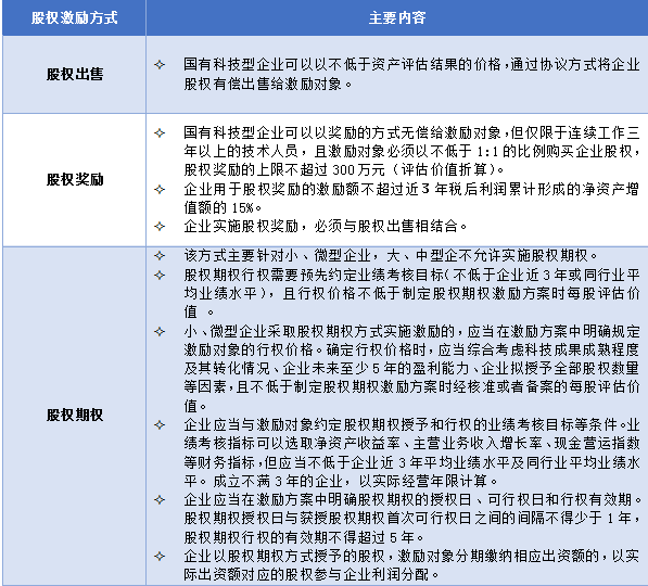 根據(jù)《關(guān)于印發(fā)國有科技型企業(yè)股權(quán)和分紅激勵暫行辦法的通知》(財(cái)資【2014】4號)一文,對國有科技型企業(yè)有以下說明:“本辦法所稱股權(quán)激勵,是指國有科技型企業(yè)以本企業(yè)股權(quán)為標(biāo)的,采取股權(quán)出售、股權(quán)獎勵、股權(quán)期權(quán)等方式,對企業(yè)重要技術(shù)人員和經(jīng)營管理人員實(shí)施激勵的行為。”
