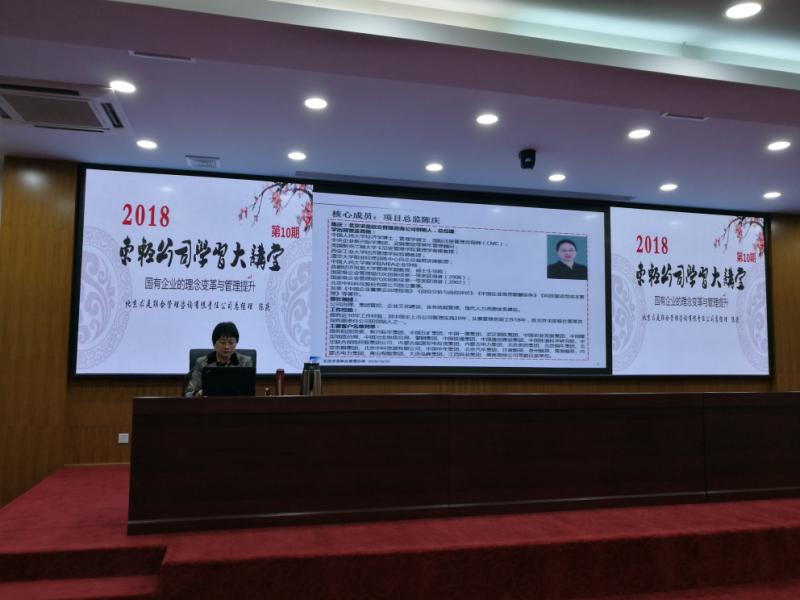10月22日上午,中國鋁業(yè)集團子公司東北輕合金有限責任公司(以下簡稱“東輕公司”)在展覽館多功能會議室舉辦第十期“學習大講堂”,我司總經理陳慶博士受邀為其進行《國有企業(yè)的理念變革與管理提升》專題講座。東輕公司各單位中層干部、負責管理改革工作的科級干部100余人聆聽了講座。