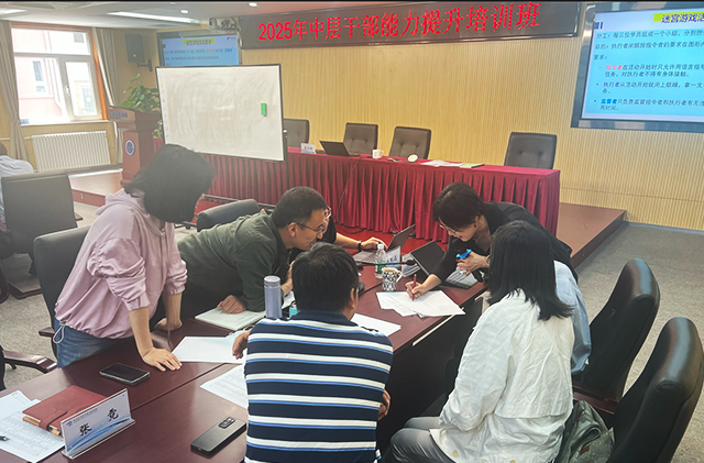 在第一天的課程中,崔教授以“戰(zhàn)略思維-組織協(xié)調(diào)-激勵賦能-自我迭代”四維領(lǐng)導(dǎo)力模型為框架,結(jié)合戰(zhàn)略地圖、OKR等工具,解析目標(biāo)分解與過程管控方法。通過“情境領(lǐng)導(dǎo)力”工具對員工發(fā)展階段進行診斷,配套指令型、輔導(dǎo)型等差異化激勵策略,并引入OJT工作指導(dǎo)法與BIA反饋模型,構(gòu)建“目標(biāo)可視化-過程管控-結(jié)果閉環(huán)”的執(zhí)行鏈條。沙盤推演環(huán)節(jié)模擬真實管理場景,學(xué)員分組完成危機決策,在實戰(zhàn)中鍛煉資源整合與團隊協(xié)同能力。