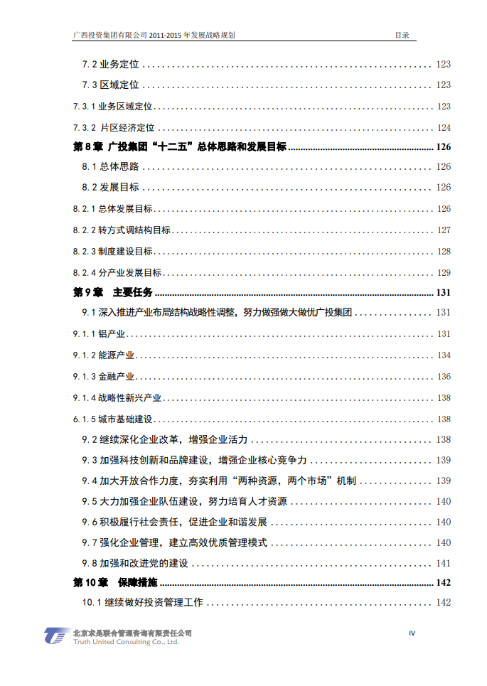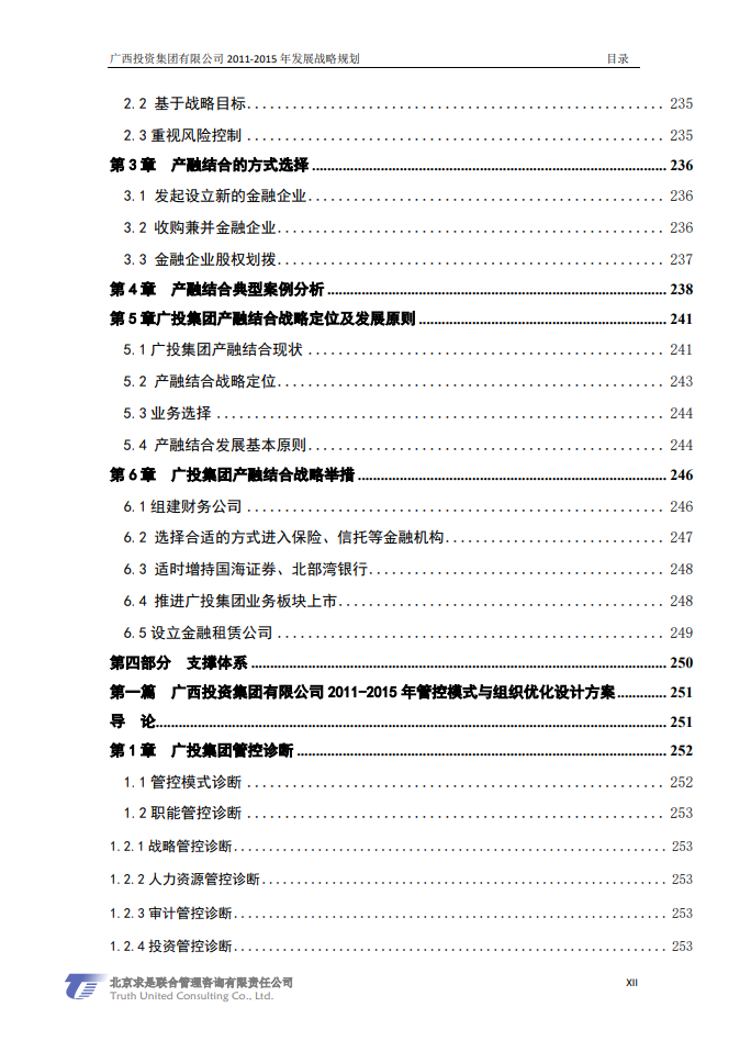 第一部分為廣投集團的診斷與回顧,第二部分為廣投集團的總體戰(zhàn)略規(guī)劃,第三部分為廣投集團專題規(guī)劃;第四部分為廣投集團在新戰(zhàn)略下的支撐體系的設計。