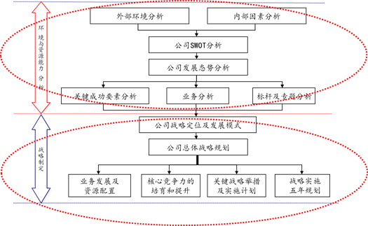 不同的企業(yè)在制定戰(zhàn)略規(guī)劃時,整體框架結(jié)構(gòu)會有所差異,但大的脈絡(luò)是有章可循的。內(nèi)外部環(huán)境分析是上到國家、中到產(chǎn)業(yè)、小到企業(yè)制定戰(zhàn)略規(guī)劃的基礎(chǔ),厘清戰(zhàn)略定位、制定戰(zhàn)略目標、設(shè)計業(yè)務規(guī)劃以及明確戰(zhàn)略保障舉措是戰(zhàn)略規(guī)劃的核心。如果不能對企業(yè)所處的外部環(huán)境以及企業(yè)的資源能力有個系統(tǒng)、清晰、客觀的認識,戰(zhàn)略規(guī)劃是沒有根基的,很容易走偏;如果不能制定契合企業(yè)實際的戰(zhàn)略目標、業(yè)務規(guī)劃與職能保障舉措,戰(zhàn)略規(guī)劃是沒有落腳點的,很容易做虛。