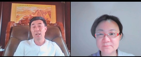圖為興東科技董事長都興東(左)、求是咨詢副總經(jīng)理郭良琴(右)通過線上會議進行項目溝通