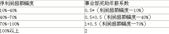 事業(yè)部獎(jiǎng)勵(lì)年薪系數(shù)的確定見(jiàn)下表。