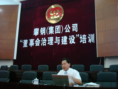 2007年7月17-21日,中央企業(yè)攀枝花鋼鐵(集團(tuán))公司“董事會治理與建設(shè)”大型董監(jiān)事高管培訓(xùn)班在攀枝花、成都兩市分別舉行,集團(tuán)幾百名管理干部參加受訓(xùn)。(詳見攀鋼日報報道)