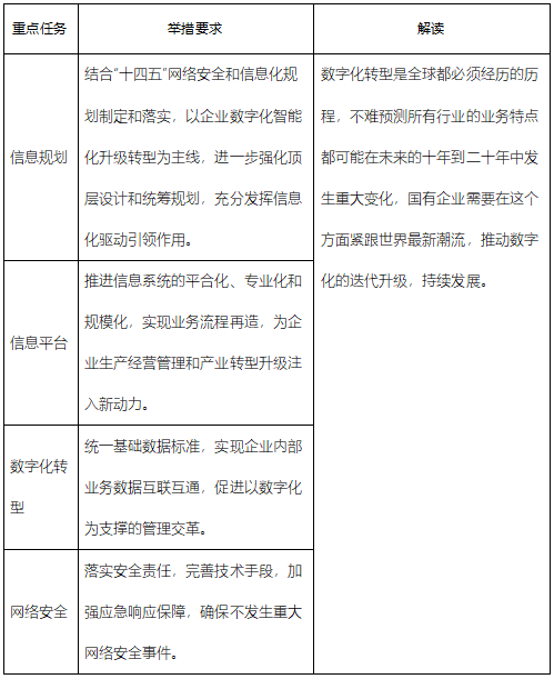 《通知》中將信息化管理問題主要界定為強(qiáng)化頂層設(shè)計和統(tǒng)籌規(guī)劃、促進(jìn)業(yè)務(wù)與信息化的深度融合、打通信息“孤島”、加強(qiáng)網(wǎng)絡(luò)安全管理體系建設(shè),提出了信息規(guī)劃、信息平臺、數(shù)字化轉(zhuǎn)型、網(wǎng)絡(luò)安全等四項(xiàng)對標(biāo)任務(wù)。
