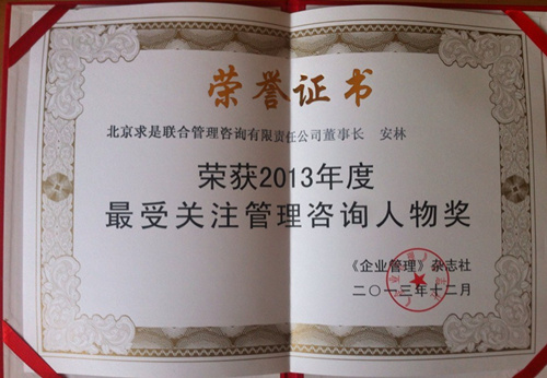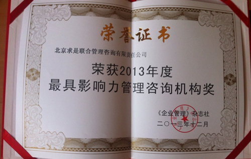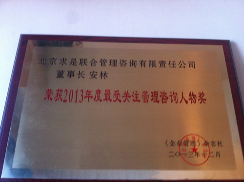 求是咨詢及公司董事長安林博士,因多年來在推進我國管理咨詢業(yè)發(fā)展所發(fā)揮的顯著作用,及在完善國資管理體制、提升企業(yè)管理水平所作出的突出貢獻,經(jīng)由《企業(yè)管理》雜志社及北大、清華、美國康奈爾大學(xué)等知名專家學(xué)者組成的專家委員會評定,分別榮獲“2013年度最具影響力管理咨詢機構(gòu)獎”和“2013年度最受關(guān)注管理咨詢?nèi)宋铼?rdquo;。我公司也是此次榮獲“雙料獎項”的唯一管理咨詢機構(gòu)。