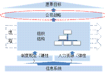 戰(zhàn)略遵從于公司的愿景和目標(biāo),組織結(jié)構(gòu)是根據(jù)公司戰(zhàn)略而設(shè)計(jì)的,而組織結(jié)構(gòu)的良好運(yùn)行需要有效的流程來(lái)貫穿,同時(shí)為了運(yùn)行有序,需要制定一系列的制度來(lái)硬性規(guī)定組織運(yùn)行的秩序,人力資源是組織運(yùn)行的源動(dòng)力,相對(duì)于制度來(lái)講,人力資源的管理是具有彈性的,涉及到如何激勵(lì)的問(wèn)題,最后,整個(gè)組織的有效運(yùn)行離不開(kāi)良好的信息交流和溝通。