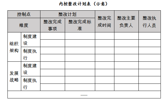 內(nèi)控整改要落實到位,必須制定嚴(yán)密的整改計劃。企業(yè)需要基于對照內(nèi)控指引發(fā)現(xiàn)的問題,制定內(nèi)控整改計劃,具體包括:明確整改完成事項、完成標(biāo)準(zhǔn)、完成時間、主要負(fù)責(zé)人、具體執(zhí)行人等。