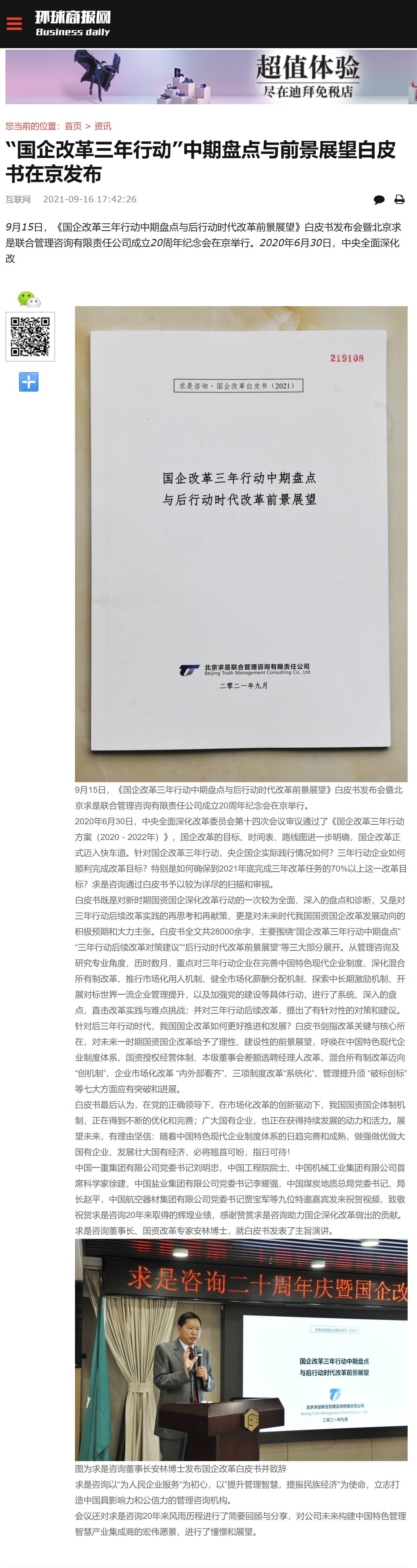 《環(huán)球商報網(wǎng)》:“國企改革三年行動”中期盤點與前景展望白皮書在京發(fā)布