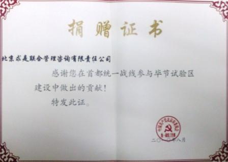 日前,我司響應(yīng)中央統(tǒng)戰(zhàn)部《關(guān)于請(qǐng)東部十省市黨委統(tǒng)戰(zhàn)部組織動(dòng)員統(tǒng)一戰(zhàn)線成員參與畢節(jié)試驗(yàn)區(qū)建設(shè)的通知》,積極捐款,以實(shí)際行動(dòng)支援貴州省畢節(jié)試驗(yàn)區(qū)發(fā)展。 下圖為中共北京市委統(tǒng)戰(zhàn)部頒發(fā)的證書。
