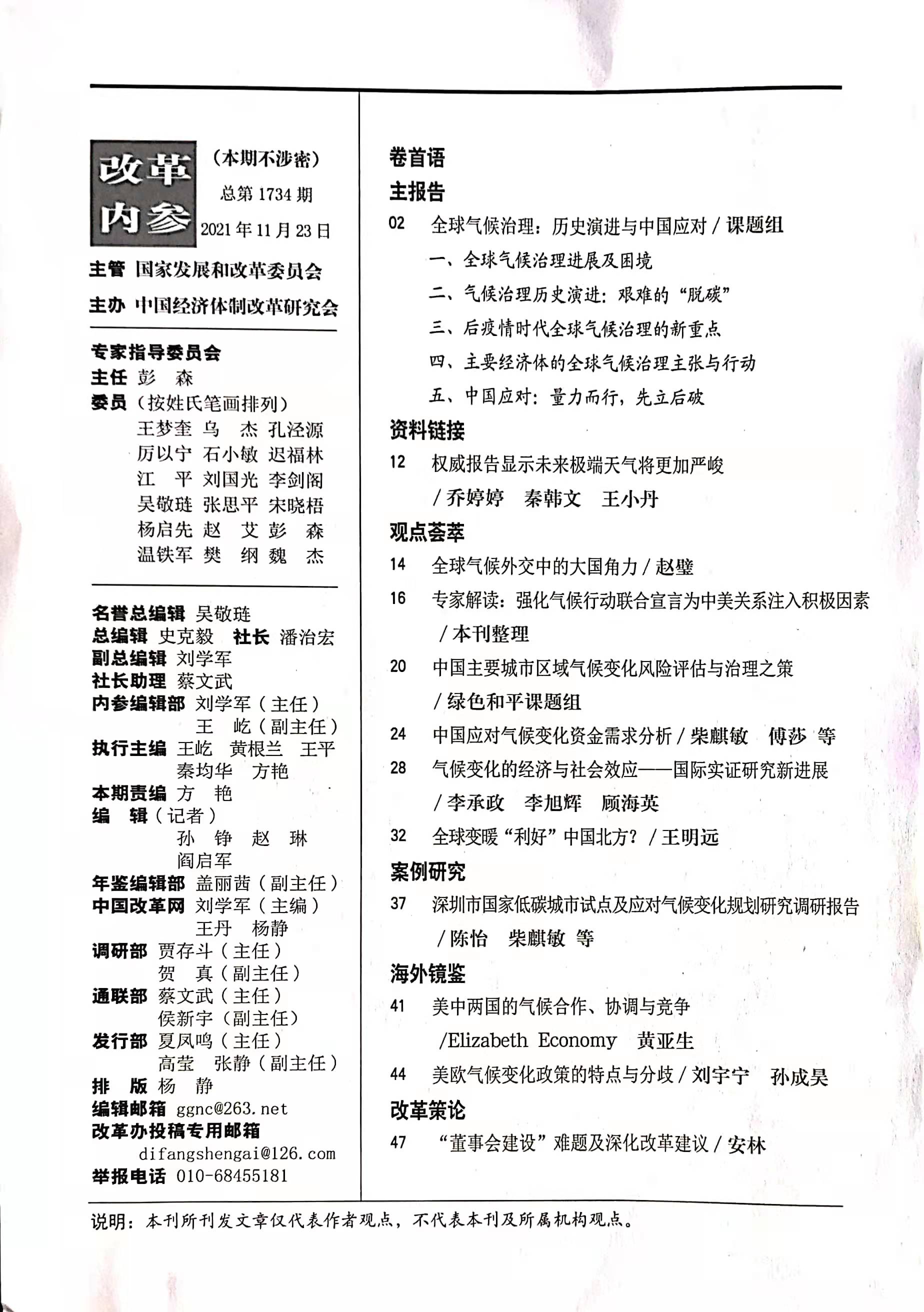 文章作為”改革策論“,刊載于2021年2021年11月23日出版的《改革內(nèi)參》高層報(bào)告。