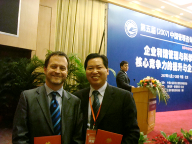 2007年10月公司總裁安林博士在第五屆中國管理咨詢高峰會上與畢博大中華區(qū)主席兼CEO榮瑪贊分別代表中、外公司榮獲“優(yōu)秀機(jī)構(gòu)代表”和“值得客戶信任的管理咨詢機(jī)構(gòu)”獎(jiǎng)項(xiàng)。
