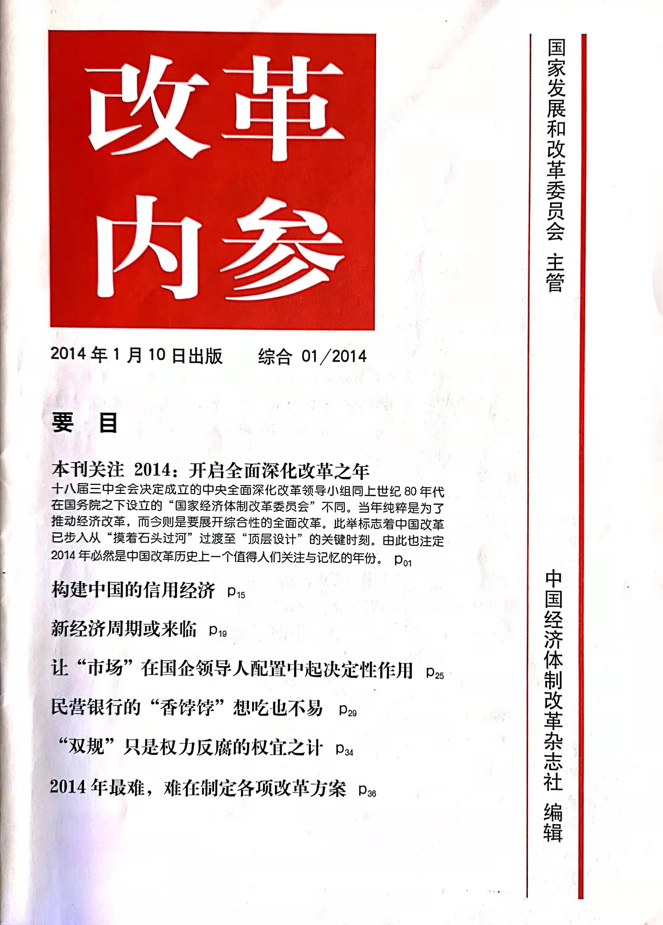 2014年1月,求是咨詢董事長、《改革內(nèi)參》特約研究員安林博士特邀在《改革內(nèi)參》(綜合01/24)發(fā)表了一篇重要文章:《讓“市場”在國企領(lǐng)導(dǎo)人配置中起決定性作用》。文中通過研究大膽提出“讓董事會(huì)差額選聘經(jīng)理人”的改革主張。后又通過建言和提案等形式積極向上反映。