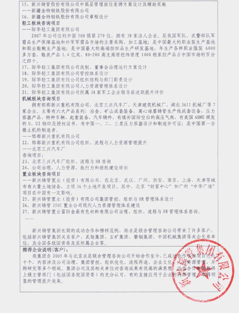 1、新興鑄管集團(tuán)有限公司 2、勁牌有限公司 3、南方醫(yī)科大學(xué)南方醫(yī)院 4、九禾股份有限公司 5、南陽(yáng)二機(jī)石油裝備(集團(tuán))有限公司 6、天津市建設(shè)投資有限公司 6、環(huán)球石材集團(tuán) 7、重慶長(zhǎng)安股份有限公司 8、江蘇聯(lián)發(fā)紡織股份有限公司 9、青島啤酒股份有限公司 10、海南省農(nóng)墾總局/海南省農(nóng)墾總公司 10、聯(lián)建建設(shè)投資有限公司