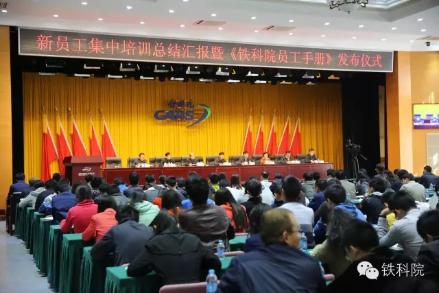 2015年10月10日上午,中國鐵道科學(xué)研究院新員工培訓(xùn)總結(jié)會暨《鐵科院員工手冊》發(fā)布儀式在鐵科會堂隆重舉行。鐵科院領(lǐng)導(dǎo)班子成員、院機關(guān)各部門負(fù)責(zé)人、院屬各單位黨政主要領(lǐng)導(dǎo)、分工會主席、團總支(支部)書記、政工協(xié)理、企業(yè)文化聯(lián)系人和2015年入院全體新員工240余人參加了會議。