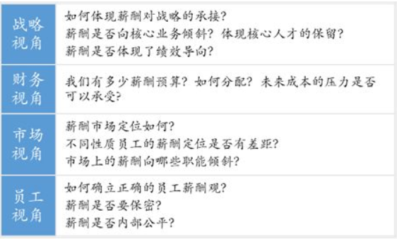 明確薪酬設計需要關注的重點——從戰(zhàn)略、員工、市場及財務四個維度全面評估現(xiàn)有薪酬體系。薪酬激勵的核心在于通過對薪酬體系的設定,激發(fā)員工工作積極性從而實現(xiàn)公司經營目標。