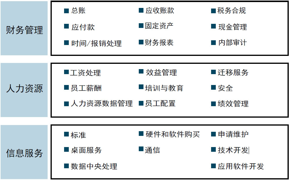 圖表1:典型的共享服務(wù)領(lǐng)域